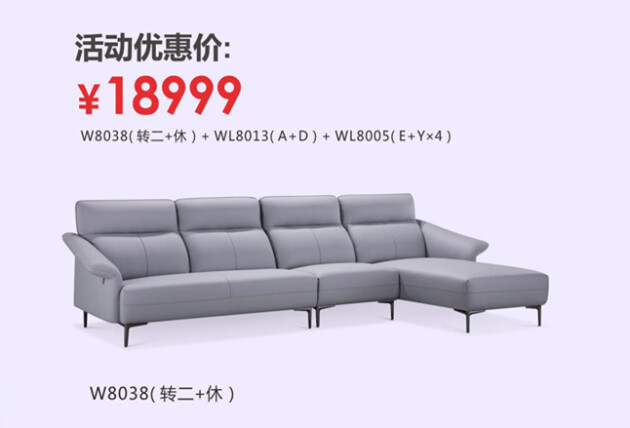 為家居系列“圖蘭”,雙廳十件套18999元。高靠背、電動功能、加長腳踏板,讓你的身體與大長腿一起自如舒展。飽滿靠背、包裹式雙層扶手,給予你從上而下如云般的輕柔支撐,讓你身陷舒適,心陷幸福。