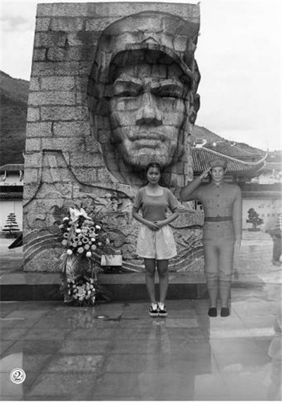游客與3D建模制作的“紅軍戰(zhàn)士”合影留念。