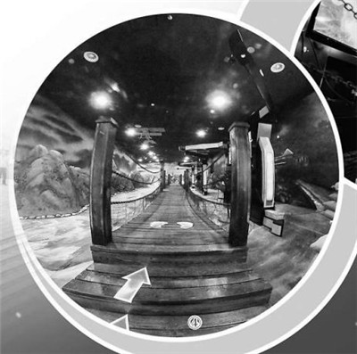 游客在四渡赤水VR戰(zhàn)爭體驗中心使用VR眼鏡看到的場景。