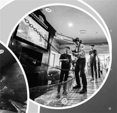 游客在四渡赤水VR戰(zhàn)爭體驗中心體驗VR設(shè)備。