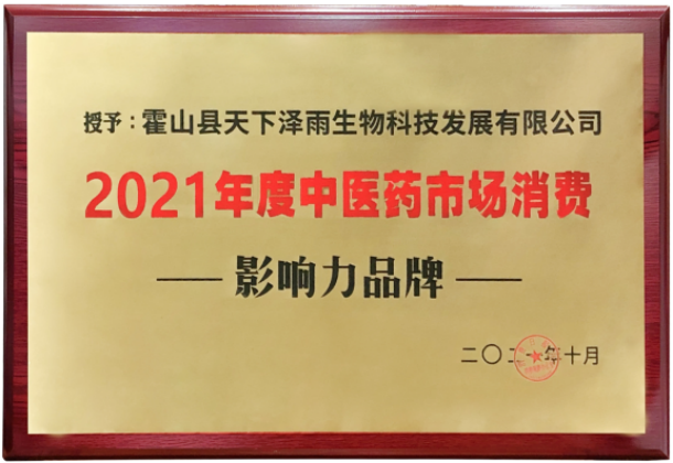天下澤雨受邀參加此次論壇,作為道地藥材行業(yè)龍頭企業(yè),天下澤雨憑借著品牌優(yōu)勢、產(chǎn)品品質(zhì),在眾多企業(yè)中脫穎而出,榮獲“2021年度中醫(yī)藥市場消費影響力品牌”榮譽,霍山縣天下澤雨生物科技發(fā)展有限公司總經(jīng)理楊濤上臺領(lǐng)獎。