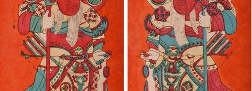 早在宋元時期,廣州、佛山一帶已流行刻繪門神的習(xí)俗。這類門神早期直接在門板上手繪刻畫,后來另置木板繪刻,大量復(fù)印,制成木版年畫行銷于市,供人張貼。