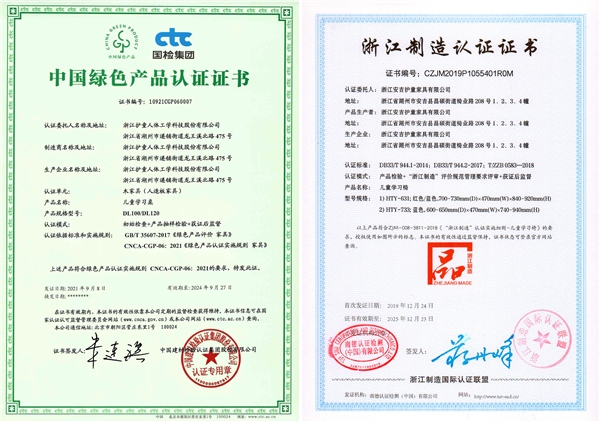 護(hù)童榮獲:中國(guó)綠色產(chǎn)品認(rèn)證、浙江制造“品字標(biāo)”認(rèn)證