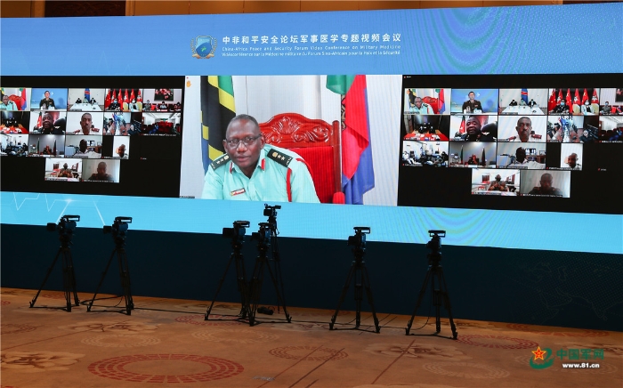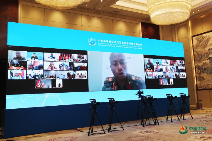 中非和平安全論壇軍事醫(yī)學(xué)專題視頻會(huì)議現(xiàn)場(chǎng),非方代表發(fā)言。魏寅 攝