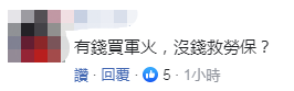 對于民進(jìn)黨當(dāng)局砸巨資購買武器,有島內(nèi)網(wǎng)友曾直斥:通通是債留子孫!也有網(wǎng)友質(zhì)疑,“(民進(jìn)黨當(dāng)局)有錢買軍火,沒錢救勞保!”↓