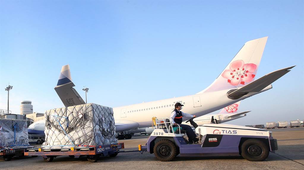 第11批BNT于5日清晨運抵桃園機場,地勤人員將3個裝載疫苗的冷凍貨柜運往華儲倉庫。(范揚光攝)