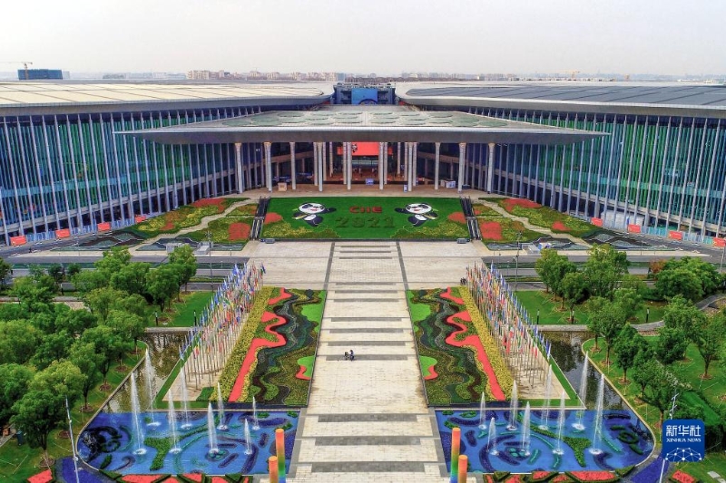 這是國家會(huì)展中心(上海)南廣場(chǎng)(10月31日攝,無人機(jī)照片)。新華社發(fā)(蔣中呈 攝)