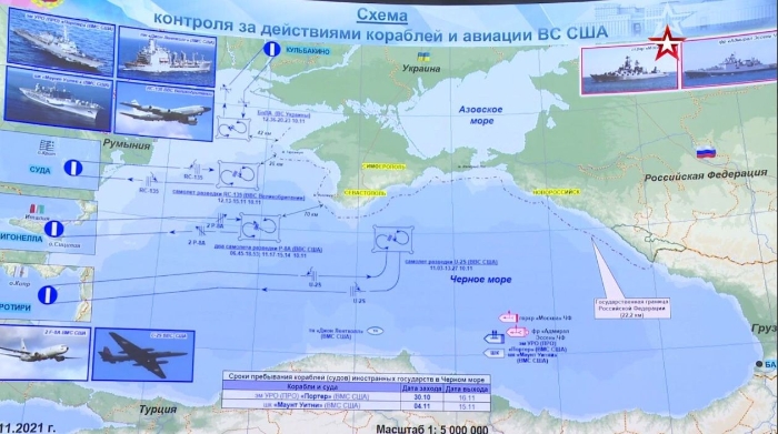 俄羅斯國防部展示的北約當前在黑海地區(qū)活動形勢圖