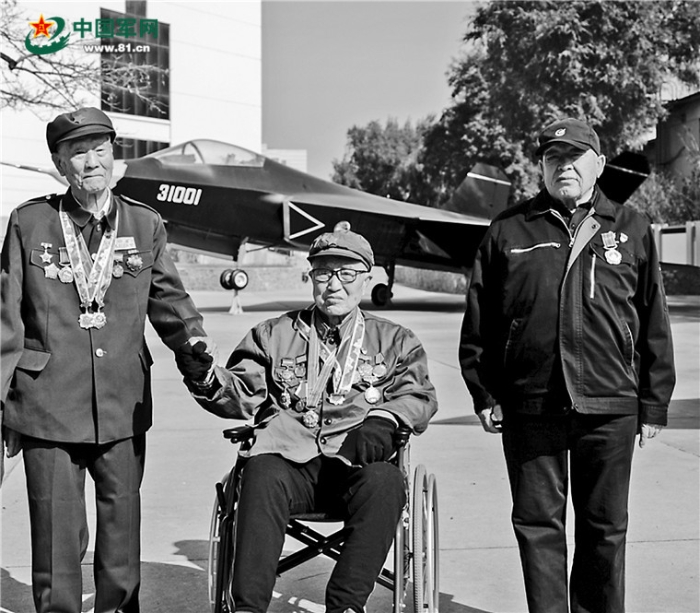 今年10月25日,是中國人民志愿軍抗美援朝出國作戰(zhàn)71周年紀(jì)念日。沈陽飛機(jī)工業(yè)(集團(tuán))有限公司(以下簡稱沈飛)航空博覽園迎來了3位特殊的客人。他們是志愿軍老兵金鐘元、馬英和曾擔(dān)任空軍駐國營112廠(沈飛前身)軍代表劉奇。胸前一枚枚熠熠生輝的軍功章,見證著他們的光榮歲月?! ?/p>