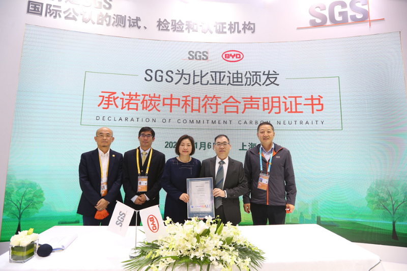 2021年11月6日,比亞迪獲頒國(guó)內(nèi)首張SGS承諾碳中和符合聲明證書。
