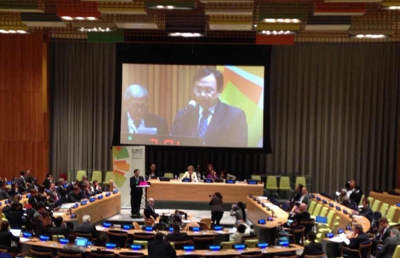 當(dāng)?shù)貢r(shí)間2014年9月23日,巴黎氣候變化大會(huì)前最為重要的大會(huì)——2014年聯(lián)合國(guó)氣候峰會(huì)在紐約聯(lián)合國(guó)總部隆重舉行,來自全球120多個(gè)國(guó)家的元首和政府首腦齊聚一堂,共同商討全球氣候變化問題。應(yīng)時(shí)任聯(lián)合國(guó)秘書長(zhǎng)潘基文邀請(qǐng),比亞迪股份有限公司董事長(zhǎng)兼總裁王傳福作為全球唯一被邀請(qǐng)的汽車企業(yè)代表,出席峰會(huì)并發(fā)表演講。王傳福指出,城市公交電動(dòng)化是快速提升城市空氣質(zhì)量的最佳途徑,全球?qū)⒂瓉沓鞘泄浑妱?dòng)化的交通革命。會(huì)上,王傳福呼吁各國(guó)將電動(dòng)汽車引入到更廣泛的城市交通領(lǐng)域,并預(yù)測(cè):不久的將來,光伏發(fā)電及新能源汽車將會(huì)成為世界各國(guó)的重中之重。