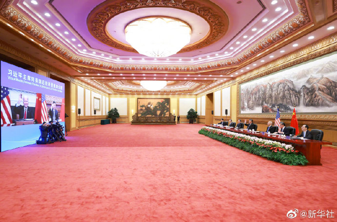 下半場視頻會談于11時06分開始,12時24分,中美元首視頻會晤結(jié)束。