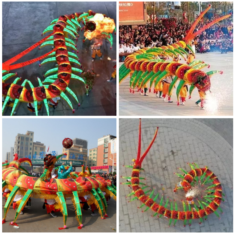 蜈蚣舞,流傳于廣東省汕頭市澄海區(qū)的傳統(tǒng)舞蹈,國家級非物質(zhì)文化遺產(chǎn)之一。蜈蚣舞是一種大型的廣場性動物舞蹈,起源于清代同治至光緒年間,由西門鄉(xiāng)人陳成錦與其好友石文勇首創(chuàng)。蜈蚣舞根據(jù)蜈蚣的動態(tài)和習(xí)性進(jìn)行模仿,表演者半蹲的姿勢起舞,模擬蜈蚣蜿蜒爬行,穿梭盤繞,惟妙惟肖,受到民眾的喜愛并流行開來,傳沿至今。圖片來源:網(wǎng)絡(luò)