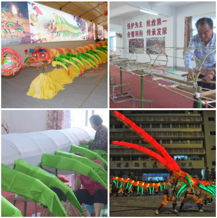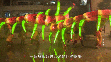 用于舞蹈的蜈蚣外形彩繪以前用水彩色涂繪,易受潮褪色,現(xiàn)改用熒光油色漆涂,色澤既鮮艷耐久,更悅目?!膀隍肌眱?nèi)部照明變化更折射出民間藝人們的獨(dú)具匠心,夜間表演更是色彩斑斕奪目。