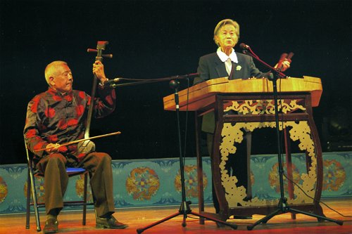 琴書表演老藝人孫成才老師(左)朱邦霞老師(右) 來源:徐州琴鼓網(wǎng)