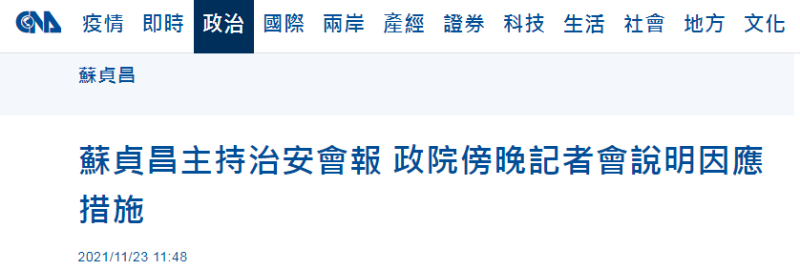 【環(huán)球網(wǎng)報(bào)道】據(jù)臺(tái)灣“中央社”23日消息,因近日島內(nèi)發(fā)生多起犯罪事件,臺(tái)“行政院長(zhǎng)”蘇貞昌今天(23日)下午召開(kāi)“治安會(huì)報(bào)”會(huì)議,并于會(huì)后舉行記者會(huì)說(shuō)明治安因應(yīng)措施,報(bào)道提到,蔡英文昨天也在臉書發(fā)文提出所謂“治安3要點(diǎn)”。對(duì)此,有島內(nèi)網(wǎng)友怒斥,無(wú)能民進(jìn)黨,上臺(tái)5年治安敗壞,現(xiàn)在才看到?還有網(wǎng)友諷刺,選舉近了,才知道治安壞了?
