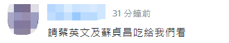 還有人喊:“請蔡英文及蘇貞昌吃給我們看?!?/p>