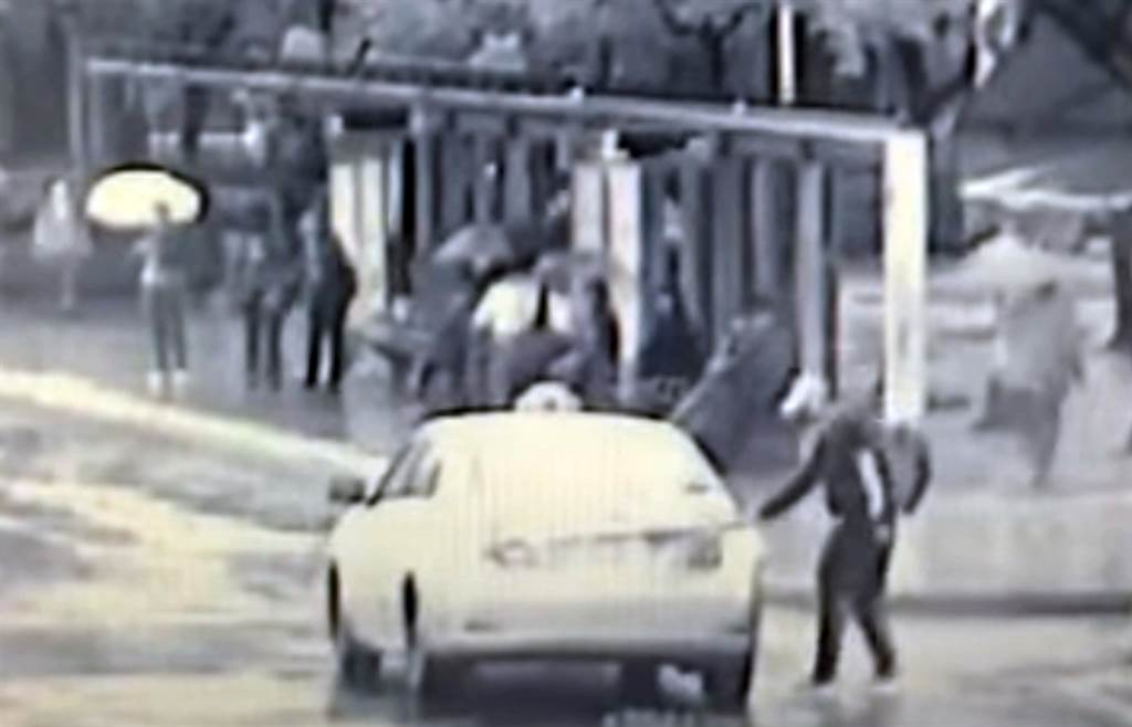 新店咖啡商人命案,兇嫌先在龍山公園欲將衣物送給民眾遭拒后,隨即在路邊招下一臺(tái)出租車潛逃。(警方監(jiān)視器)