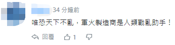 另有網(wǎng)友直斥,“唯恐天下不亂,軍火制造商是人類戰(zhàn)亂助手!”↓