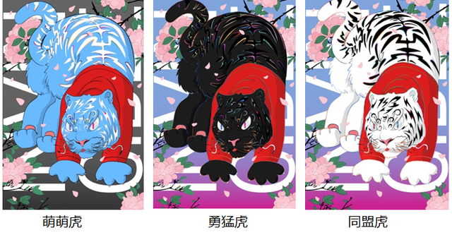當(dāng)代潮流藝術(shù)家歪歪畢業(yè)于清華大學(xué)美術(shù)學(xué)院,而后在紐約游學(xué),他的作品風(fēng)格融合了潮流藝術(shù)和傳統(tǒng)藝術(shù),擅長通過數(shù)字化進(jìn)行創(chuàng)作,降低了不同介質(zhì)間作品轉(zhuǎn)化的難度。多元知識結(jié)構(gòu)給予他創(chuàng)作表達(dá)時想象力和空間感,他在創(chuàng)作生肖系列時,有意將滴水獸這一傳統(tǒng)元素融合貓科動物老虎的銳利和趣味,采用潮流藝術(shù)中常用的鮮亮色彩,更加呼應(yīng)春節(jié)喜慶祥和的時令特點(diǎn)。