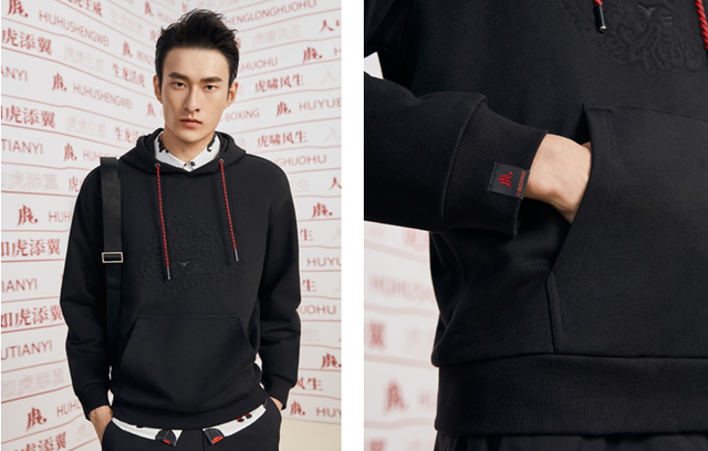 重工刺繡連帽衛(wèi)衣 胸前圖案與刺繡工藝是精髓,此款重繡工藝衛(wèi)衣通過線描方式展示滴水獸虎,藝術(shù)感十足。休閑隨意的衛(wèi)衣類別盡顯品質(zhì),既滿足了個性化表達(dá),暗花設(shè)計(jì)又不過分張揚(yáng),年齡普適度很高。