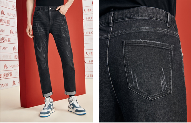 虎爪流蘇牛仔褲 融合輕度破壞手法,相較常規(guī)的丹寧流蘇,更加準(zhǔn)確呈現(xiàn)虎爪抓痕。滴水獸吐水圖案低調(diào)設(shè)計(jì)于褲袋之下,同謙遜敢拼的閩南文化呼應(yīng)成趣。