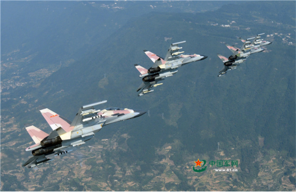 “霹靂中隊”編隊飛行。圖源:中國軍網(wǎng)