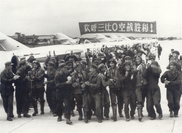 1958年7月29日,東南沿海因受臺風天氣影響而陰云密布。臺灣4架F-84飛機以氣象條件為掩護,沿閩南海邊襲來。正在汕頭沿海駐訓的該空軍部隊接到敵情通報,果斷駕駛4架戰(zhàn)機升空迎敵,與對手展開“空中刺刀戰(zhàn)”,在持續(xù)時間僅3分鐘的空戰(zhàn)中,創(chuàng)造了零傷亡擊落敵機2架、擊傷敵機1架的光輝戰(zhàn)績。