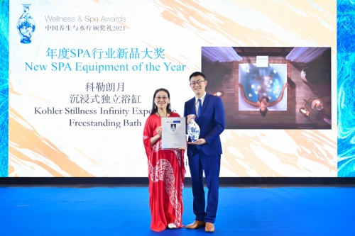 此次頒獎禮上,全新亮相的科勒朗月沉浸式獨(dú)立浴缸榮獲年度SPA行業(yè)新品大獎,科勒(中國)投資有限公司市場副總裁強(qiáng)基弘先生也在頒獎禮上發(fā)表開場致辭,分享科勒朗月沉浸式獨(dú)立浴缸的設(shè)計理念。其靈感來源于日本森林浴(Shinrin-yoku),采用無邊溢流的循環(huán)水流設(shè)計,當(dāng)熱水緩緩注入浴缸,一段自我療愈的旅程便也起航。燈光、水氣、香氛相互交織,隨著水流逐漸溢出,宛若山林間的潺潺溪流,環(huán)繞四周的全光譜照明營造各式氛圍,氤氳水氣裊裊升起,仿佛一層薄紗輕柔籠罩,讓沐浴者享受深層放松身心,多重感官的沉浸式泡浴??评諏⑺烻PA帶入家居浴室,讓忙碌的生活節(jié)奏在此刻慢下來,呈現(xiàn)如沐自然的悠然閑適,打造優(yōu)雅高端的品質(zhì)生活。