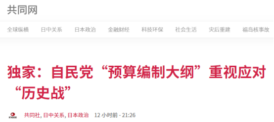 圍繞2022年度日本政府預(yù)算案,自民黨匯總該黨基本方針“預(yù)算編制大綱”,至于其草案內(nèi)容,日本共同社1日?qǐng)?bào)道,自民黨重視從軍慰安婦和強(qiáng)征勞工等與日韓之間的歷史問題上的“歷史戰(zhàn)”,大綱草案寫道“歷史戰(zhàn)”以及福島核污染水處置問題是重要課題,宣稱“將鞏固對(duì)我國(guó)的理解和信任”,強(qiáng)調(diào)應(yīng)進(jìn)一步強(qiáng)化與國(guó)際機(jī)構(gòu)合作以及戰(zhàn)略性的對(duì)外宣傳。