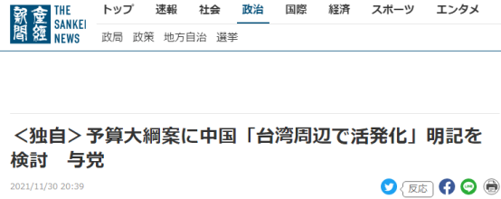 日媒:自民黨討論在“預(yù)算大綱”中明記“中國(guó)在臺(tái)灣附近活躍”