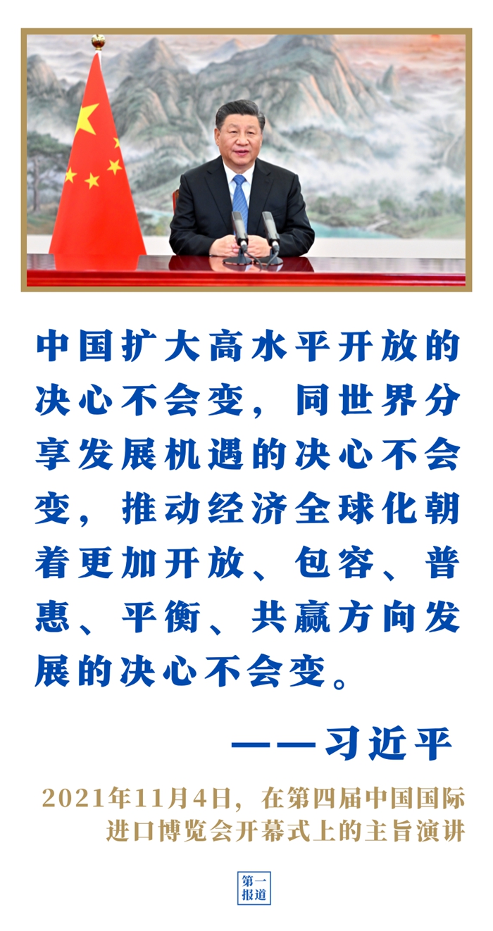 第四屆進(jìn)博會(huì)上,習(xí)近平主席表示,中國(guó)愿同各國(guó)共建開放型世界經(jīng)濟(jì),讓開放的春風(fēng)溫暖世界;第三次“一帶一路”建設(shè)座談會(huì)上,習(xí)近平主席強(qiáng)調(diào)以高標(biāo)準(zhǔn)、可持續(xù)、惠民生為目標(biāo),繼續(xù)推動(dòng)共建“一帶一路”高質(zhì)量發(fā)展。