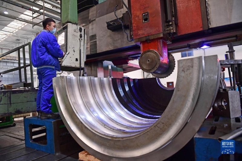 在沈陽鼓風機集團車間,工人通過屏幕操作機器加工產(chǎn)品內(nèi)機殼(2020年3月16日攝)。新華社記者 楊青 攝