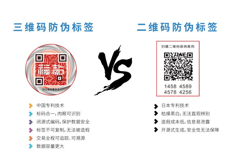 再大的優(yōu)勢也抵不過趨勢,二維碼防偽溯源技術(shù)的出現(xiàn)順應著數(shù)據(jù)時代的發(fā)展需求,而在編碼領域中,三維碼的出現(xiàn)是圖像識別及信息時代需求共同催生的產(chǎn)物。三維碼在保證信息數(shù)據(jù)安全的基礎上,具有大容量的詳細信息、色彩驚艷、品牌價值等功能,開創(chuàng)信息時代人類編碼科技的新突破。