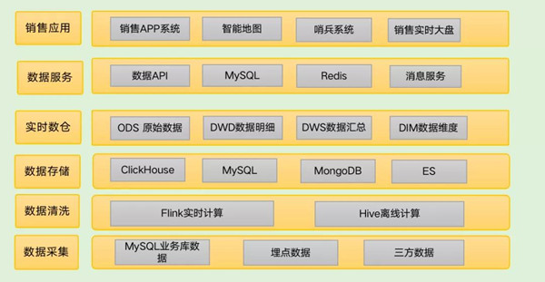 基于目前銷(xiāo)售數(shù)據(jù)我們?cè)谏蠈訕?gòu)建了各種應(yīng)用,比如APP后端系統(tǒng)、實(shí)時(shí)大盤(pán)、哨兵系統(tǒng)、智能地圖、運(yùn)營(yíng)推薦系統(tǒng)等,來(lái)滿足業(yè)務(wù)方的需求。