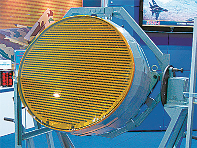 蘇-57戰(zhàn)機(jī)的N036“松鼠”有源相控陣?yán)走_(dá)。資料圖片