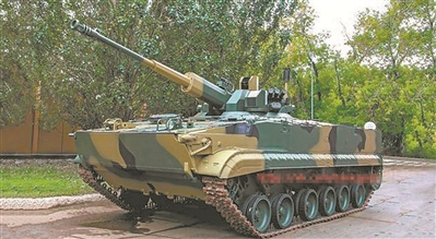 BMP-3履帶式步兵戰(zhàn)車,被稱為步兵戰(zhàn)車中的“坦克”。依靠車載武器賦予的強大火力,它帶有很強的進攻性。