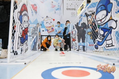 在筑夢冰雪區(qū)域,VR科技+冰雪互動打造的趣味游戲讓現(xiàn)場觀眾樂此不疲。VR滑雪游戲利用虛擬現(xiàn)實(shí)技術(shù)與冰雪運(yùn)動項(xiàng)目深度融合,科技感滿滿,使參與者可沉浸體驗(yàn)在雪地馳騁的快樂。除此之外,冰壺體驗(yàn)游戲前也排起了長隊(duì),現(xiàn)場觀眾手握球把,奮力將冰壺球滑向圓心得分區(qū),頗有專業(yè)風(fēng)范。多種好玩刺激的冰雪互動游戲讓活動現(xiàn)場人氣高漲。