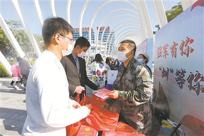 12月上旬,廣東省深圳市寶安區(qū)征兵辦公室在大灣區(qū)開設(shè)征兵服務(wù)點,開展征兵宣傳活動??鲁A攝