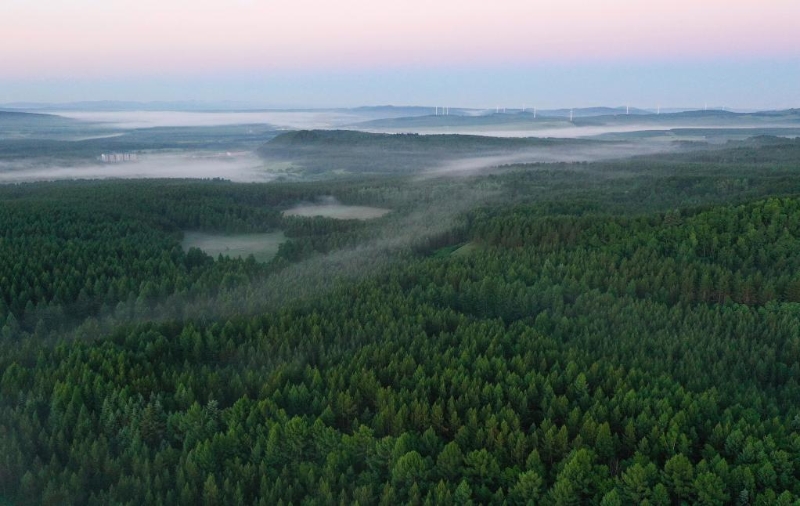 2021年6月27日拍攝的塞罕壩國家森林公園晨景(無人機(jī)照片)。 新華社記者 楊世堯 攝