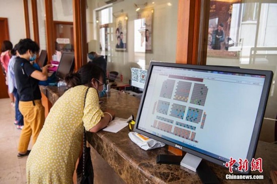 民眾在北京人民藝術(shù)劇院首都劇場票務(wù)中心購票。(來源:中新網(wǎng))