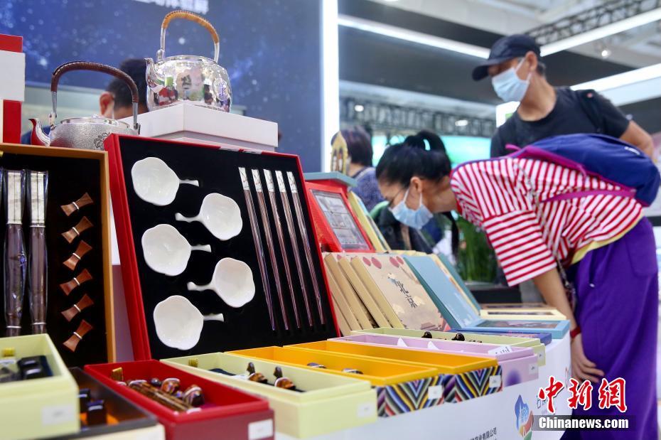 9月7日,服貿(mào)會文旅服務(wù)專題展石景山區(qū)展位文創(chuàng)產(chǎn)品吸引觀眾。(來源:中新網(wǎng))