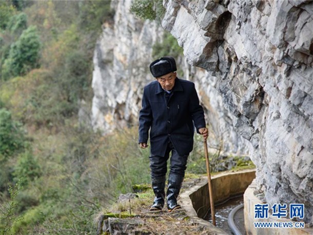 貴州遵義山區(qū)的老支書黃大發(fā),帶領(lǐng)鄉(xiāng)親們前后歷經(jīng)36年時間,靠著鋤頭、鋼釬、鐵錘和雙手,硬生生在峭壁懸崖間挖出一條10公里的“天渠”,結(jié)束了當(dāng)?shù)亻L期缺水的歷史,拔掉了村子的“窮根”。