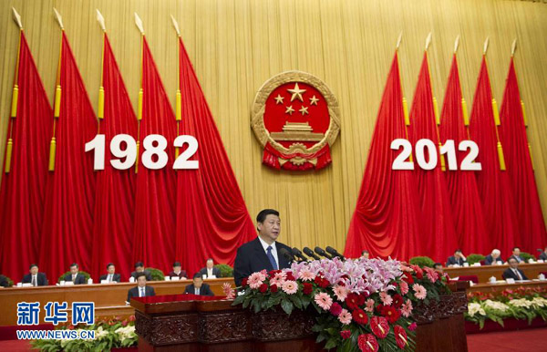 2012年12月4日,首都各界在北京人民大會堂集會,隆重紀念現(xiàn)行憲法公布施行三十周年。中共中央總書記、中央軍委主席習(xí)近平在大會上發(fā)表重要講話。新華社記者黃敬文攝