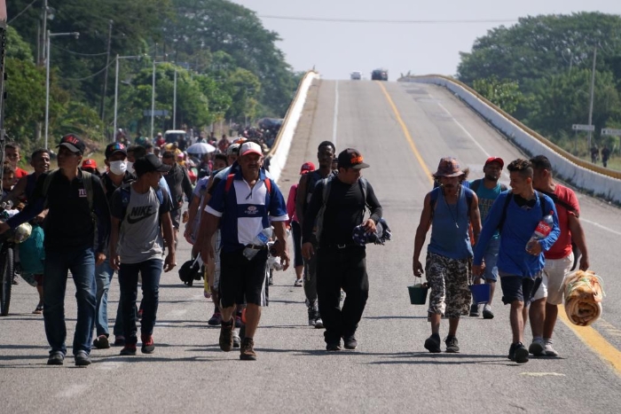 11月12日,在墨西哥瓦哈卡,試圖北上前往美國的移民走在一條公路上。新華社發(fā)(丹尼爾·里卡德斯攝)