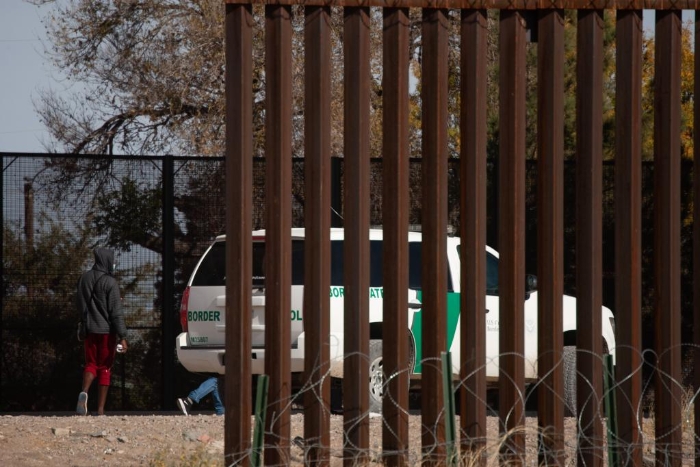 12月7日在墨西哥華雷斯城拍攝的照片顯示,試圖翻越邊境墻進(jìn)入美國的移民被美國邊境執(zhí)法人員攔截。新華社發(fā)(戴維·佩納多攝)