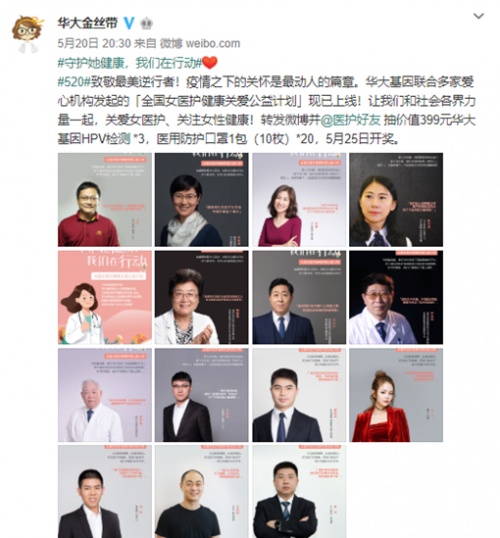▲眾多專家和企業(yè)大咖為公益站臺|來源:華大金絲帶微博