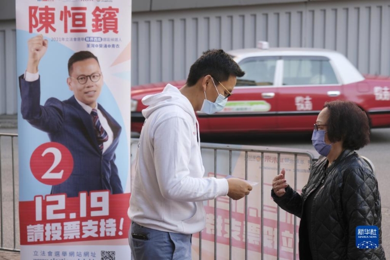 在位于香港黃埔的投票站,選民在排隊(duì)準(zhǔn)備投票(12月19日攝)。新華社記者 王申 攝