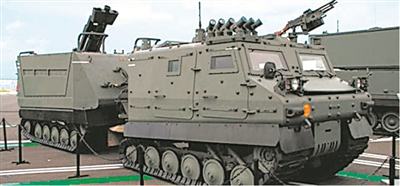 與前輩有所不同,它采用了步兵戰(zhàn)車的底盤、動力系統(tǒng)、變速箱和傳動裝置,并在不少方面進(jìn)行了優(yōu)化。比如,采用鋼絲加強(qiáng)整體成型橡膠履帶,“腳底板”更輕更耐磨。在履帶遇襲受損的情況下,也能以較快速度行駛一段時間。