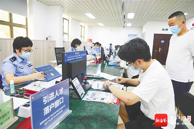 在??谑泄簿置捞m分局辦證中心,工作人員給引進人才辦理落戶業(yè)務(wù)。海南日報記者 張茂 攝
